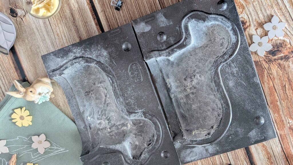 - 室温で柔らかくしたバターを、型の隅々(特に顔や首のくびれ)まで刷毛で丁寧に塗ります。